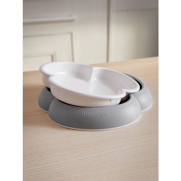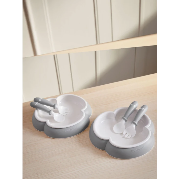 The plate’s trefoil design makes it easier for your child to scoop food onto the cutlery. The plate stands sturdily on the table without tipping, and the spoon and fork have short handles that are easy for children to hold. The set is available in several delightful colours that blend in with the modern home, and is suitable from the age of approx. 4 months.