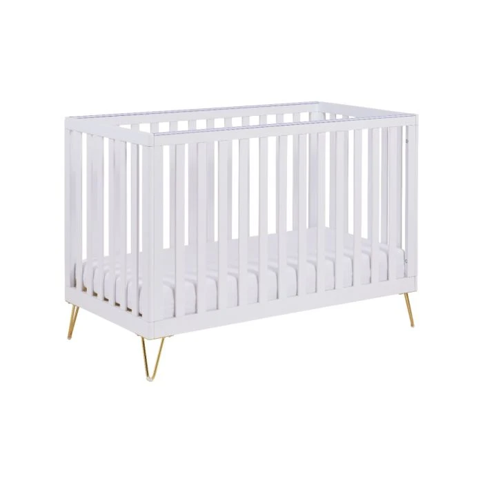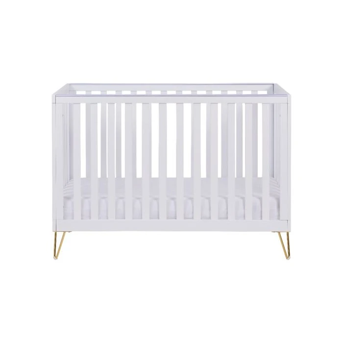 The stunning Babymore Kimi convertible cot bed will be the standout piece of furniture in your nursery. An exquisite combination of contemporary wooden style and retro hairpin legs blend seamlessly to provide a striking fashion statement. The all around slats design provides an airy, open feel that allows full visibility of your little one from any angles. The Scandi-inspired cot bed has been stylishly designed with retro hairpin legs. It offers 3 adjustable mattress heights, teething rails, and can be transformed into a toddler bed, suitable from birth to 4 years old. The hairpin legs are made of high quality steel wire, stable, sturdy and durable, and come with floor protectors included.