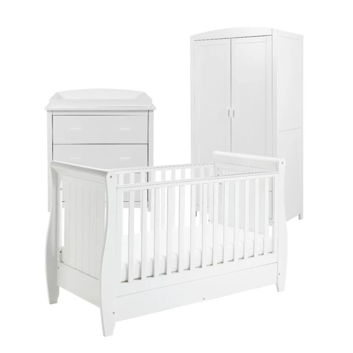 For parents who want a chic nursery that will last for years to come, our three-piece Stella room set with sleigh cot bed is the ideal option. This set is sure to become a treasured addition to your family’s life thanks to its timeless style and flexible functionality.