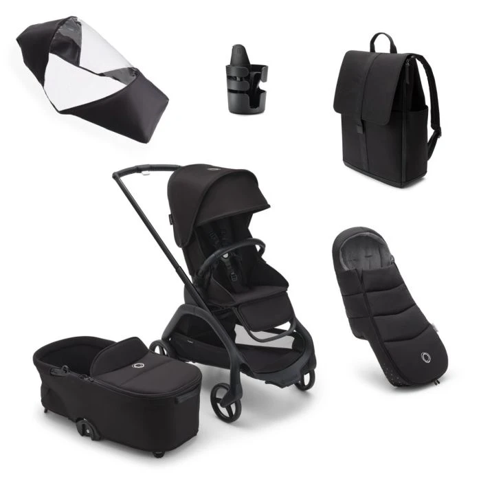 - This essential bundle additionally contains footmuff, backpack, raincover and cup holder