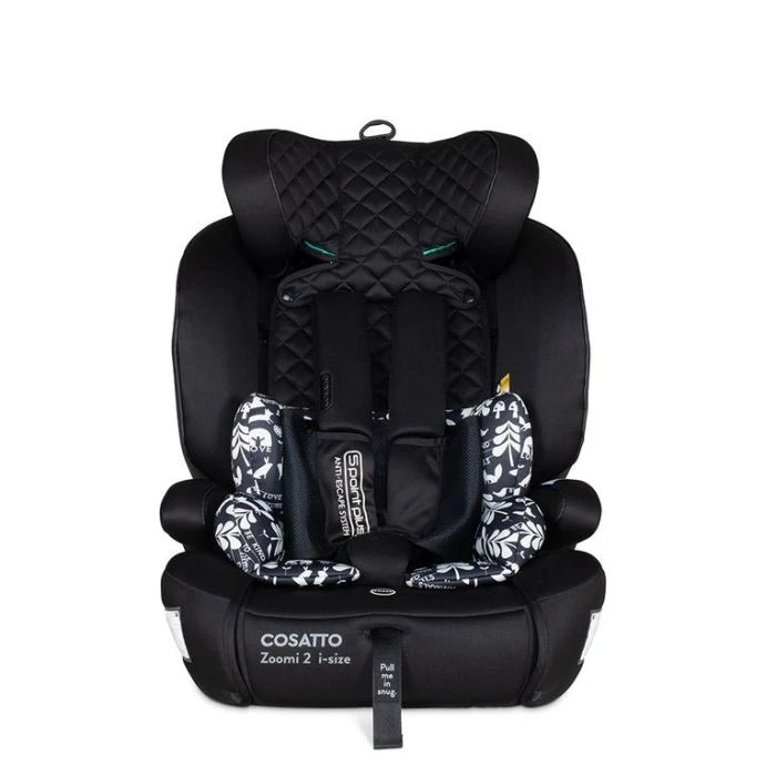 Padded Protector : The Cosatto Zoomi 2 i-Size car seat has a five-point safety harness, deep side wings and a thick padded head rest. The Zoomi 2 I-Size features side impact protection with shock-absorbing memory foam – plus a tummy pad, chest pads and comfy padded arm rests. Zoomi 2 i-Size keeps your precious passenger snug.Â