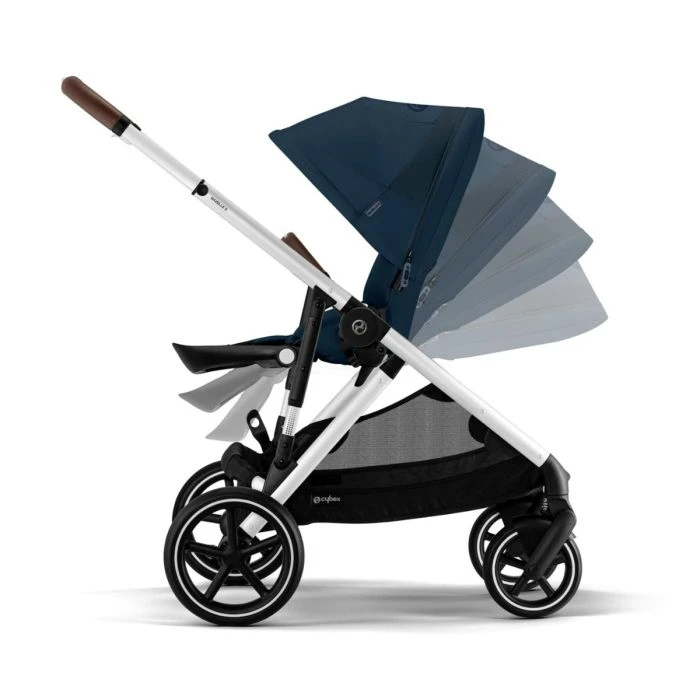 The new unique CYBEX one-pull harness lets you fit and secure your child in seconds. The new recline mechanism makes reclining your little one into a sleeping position smooth and easy. With practically endless set-up possibilities, it is the family stroller that always has a solution.Â
