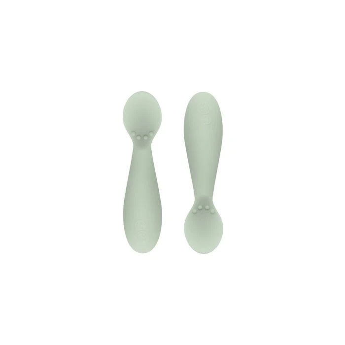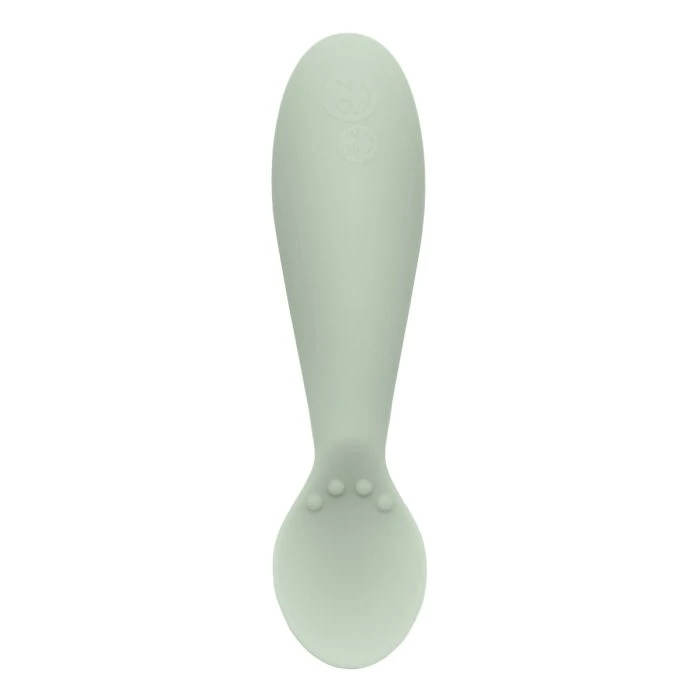 Set of 2 soft silicon spoons, non slip grip, sensory bumps and raised rim for sensory awareness, narrow spoon bowl safely fits baby’s mouth.