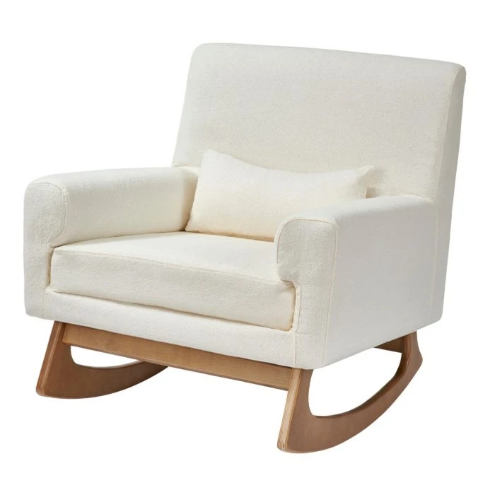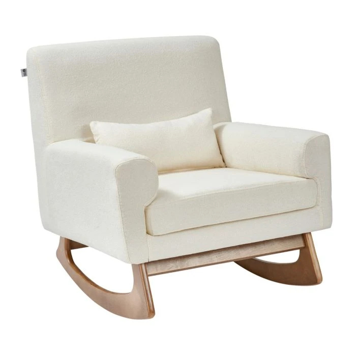 The Serena BouclΓ© collection features a soft, durable, textured fabric made with loops or curls of yarn. Visually interesting, this tactile textured fabric offers greater warmth and durability to withstand regular wear and tear. Added to the classic styling of the Serena Rocking chair, the Boucle fabric lends depth and interest and an ultra fashionable decor statement in your nursery or living space. Choose from a choice of serene neutrals in Chalk or Biscuit or our beautiful botanical inspired Sage or Forest green. For the first time, the Boucle collection also allows you to customise the look with your choice of Oak or Walnut finish legs.