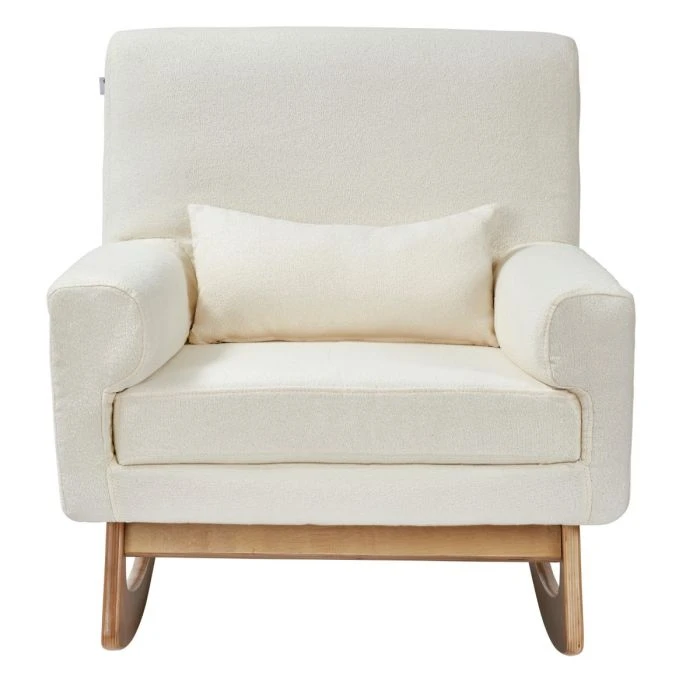 The Serena Bouclé collection features a soft, durable, textured fabric made with loops or curls of yarn. Visually interesting, this tactile textured fabric offers greater warmth and durability to withstand regular wear and tear. Added to the classic styling of the Serena Rocking chair, the Boucle fabric lends depth and interest and an ultra fashionable decor statement in your nursery or living space. Choose from a choice of serene neutrals in Chalk or Biscuit or our beautiful botanical inspired Sage or Forest green. For the first time, the Boucle collection also allows you to customise the look with your choice of Oak or Walnut finish legs.