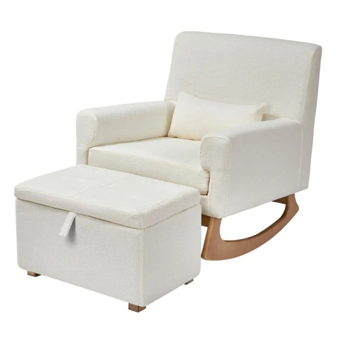 - Beautiful styling combined with ultimate comfort. Featuring natural wood contoured legs for a smooth rocking motion