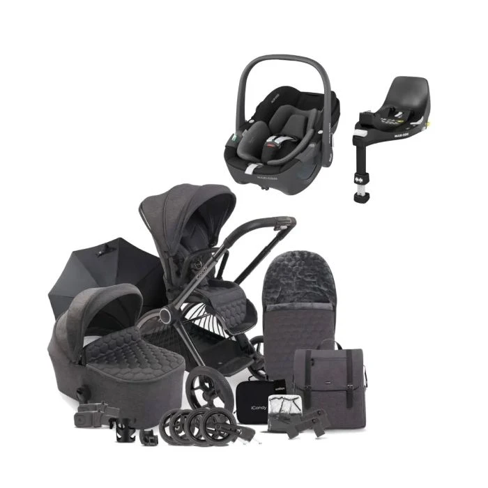 Designed for every journey, the iCandy Core is an adaptable pushchair for any terrain. Striking new design, multi-mode wheelbase, new LED Visibility Hub light feature and the largest seat unit in the iCandy range. The bundle includes Pushchair, Carrycot, Seat Unit, LED Visibility Hub Light, Footmuff & Liner and additional complimenting accessories.Â