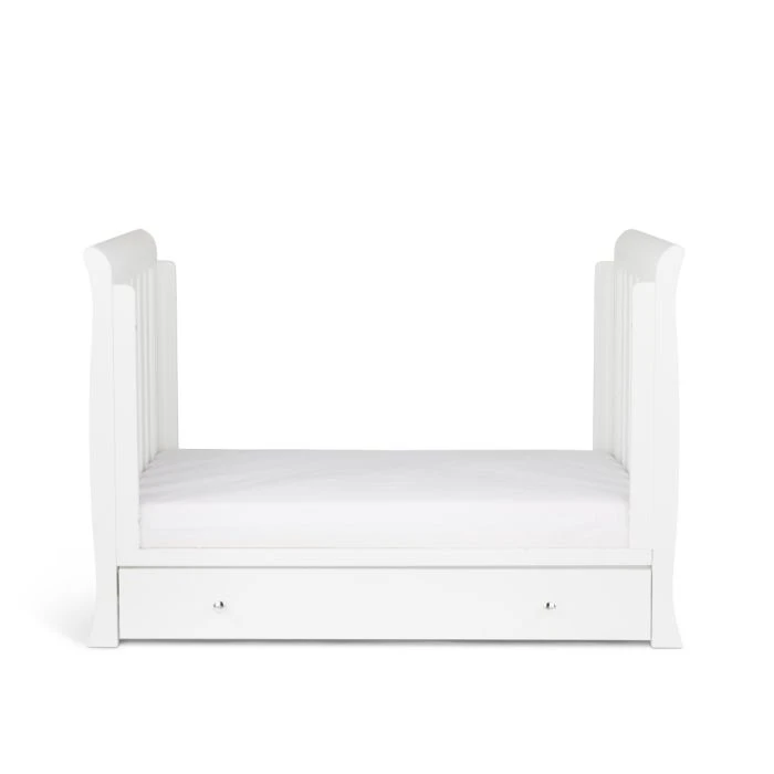 Once your little one is ready to progress to a bed, the Snowdon 4 in 1 Mini Cot Bed can convert easily into a stylish Junior Bed suitable for a child up to approximately four years old. The Toddler Rail mode gives the added reassurance during transition from cot to bed, and the Day Bed mode offers maximum longevity and great value. The mini cot bed requires a 120 x 60cm mattress.