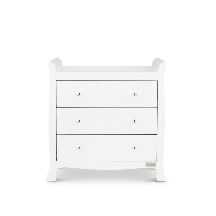 The stylish Changing Unit features a changing station that allows you to comfortably change and dress your baby and can accommodate a changing mat up to 76cm x 46cm. Three deep drawers ensure that all your baby’s essentials are within easy reach, where you need them, and feature the same elegant handles to match the rest of the Snowdon collection.