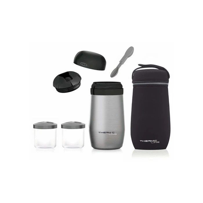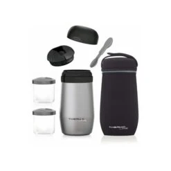 - New stainless steel baby food flask with 2 x 220 ml separate compartments inside.