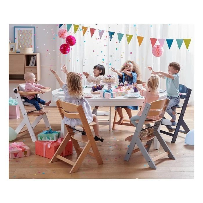 The 3-in-1 ENOCK feeding chair is distinguished by a timeless design and a wide range of adjustments, thanks to which it will fit both the dining table and children’s desk. Solid beech wood construction guarantees durability for many years. A convenient adjustment system, taking into account several levels of the seat and footrest, ensures optimal adjustment to the child. The backrest of the seat has an ergonomic form, and the seat itself is wide and deep.