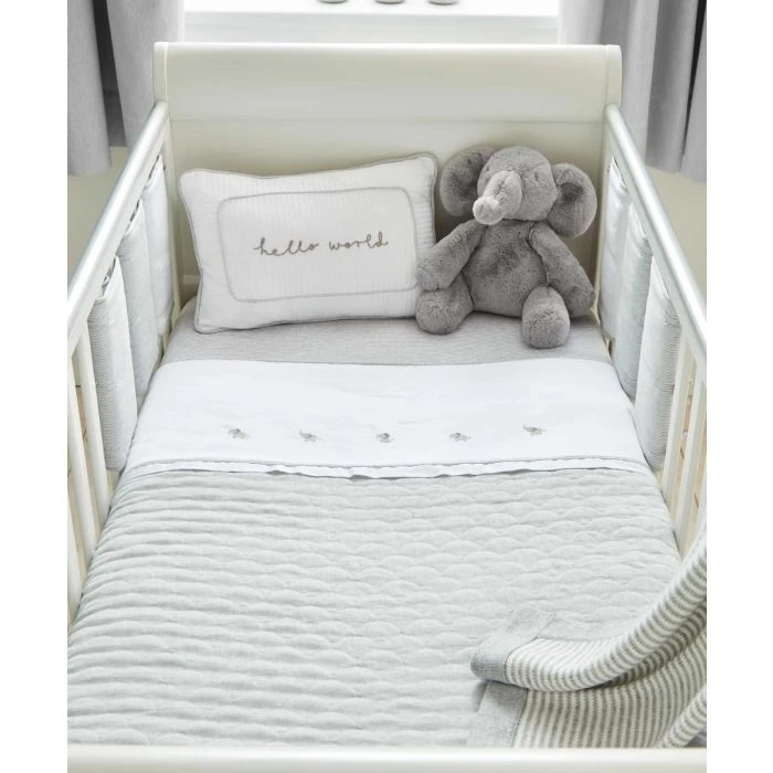 Enriched with embroidered detailing, your little one can cosy up at bedtime with our Welcome to the World Quilt. Suitable from 12 months, this stunning quilt is made with soft cotton so it’s gentle against baby’s skin, and it features luxury scallop quilted chambray elements and playful elephant characters. The 2.5 Tog design is sure to keep them warm and cosy on a night.