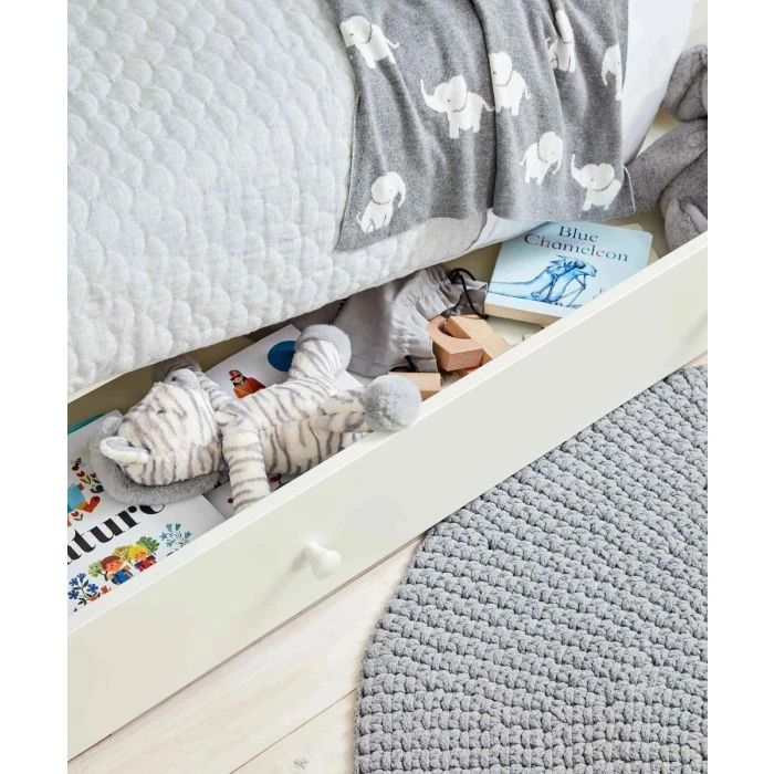 It also includes 2 teething rails across the top bars of the cot, to protect your little one’s gums, and the cot’s paintwork, when they’re teething. And because you can also purchase an additional underbed drawer, you can turn your stylish, adaptable cotbed into an extra handy piece of storage – great for all those extra essentials.