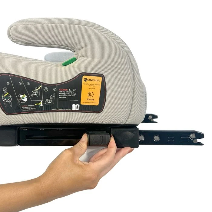 The My Babiie iSize backless booster seat is suitable for children from 135-150 cm (approx. 6 to 12 years). You are safe in the knowledge that this booster seat is approved to R129 safety standards with the extra firm Isofix plus belt install. With a luxurious black quilted padded seat and padded armrests, this booster seat is designed to ensure your child travels in comfort and safety.