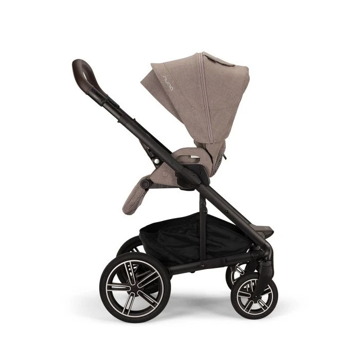 The included Nuna Mixx carrycot has additional mesh panels to provide comfort for your newborn and it features a UPF 50+ canopy with Dream drapeâ„¢ for optimal sun protection. You can use the luxe hand-sewn leather look carry handle to easily carry the carrycot without disturbing your baby and it has a compact, flat fold for easy storage.