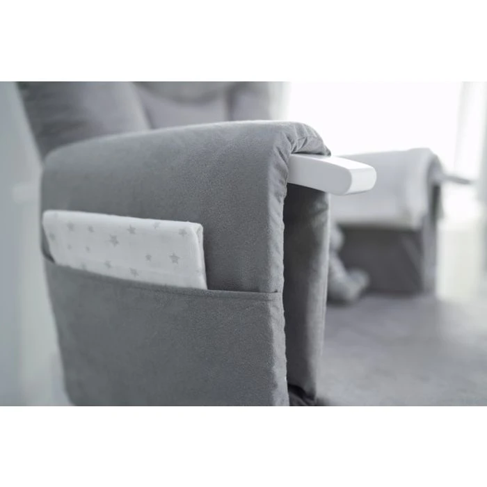 The Deluxe Reclining Glider Chair and Stool from Obaby is a fantastic space where you and your little one can share moments together. It can be used in any room you like for feeding, story time, bonding, rocking your baby to sleep and simply taking it easy. The extra thick back and seat cushions are sumptuously padded for luxurious cosiness and the padded arm rests each feature handy storage pockets to ensure those essentials are easy to reach.