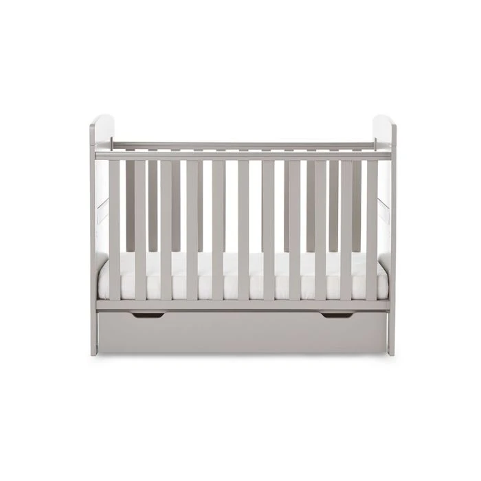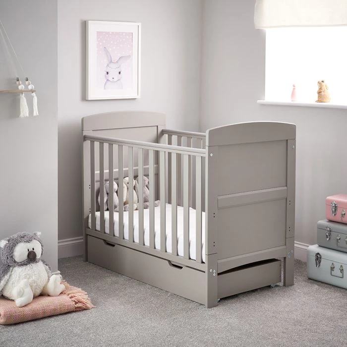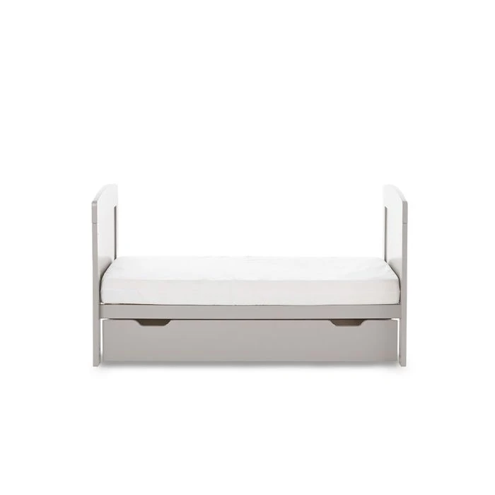 Our simple but stunning mini cot bed features open slatted sides which are perfect for watching over your little treasure during their most peaceful times and the presence of teething rails ensures their delicate teeth are protected. As your child grows, learning to sit and stand, the mattress base can be lowered, with three base heights available in total, providing extra security and reassurance. Then by simply removing the fixed sides and splitting the end panels, the cot bed converts seamlessly from a cot into a cosy and stylish junior bed, meaning minimal disruption during little one’s often daunting transition. Once the change is complete, the bed can be suitable for a child up to approximately three years, meaning the Grace Mini offers maximum durability and great value. Requires an Obaby 120 x 60cm mattress.