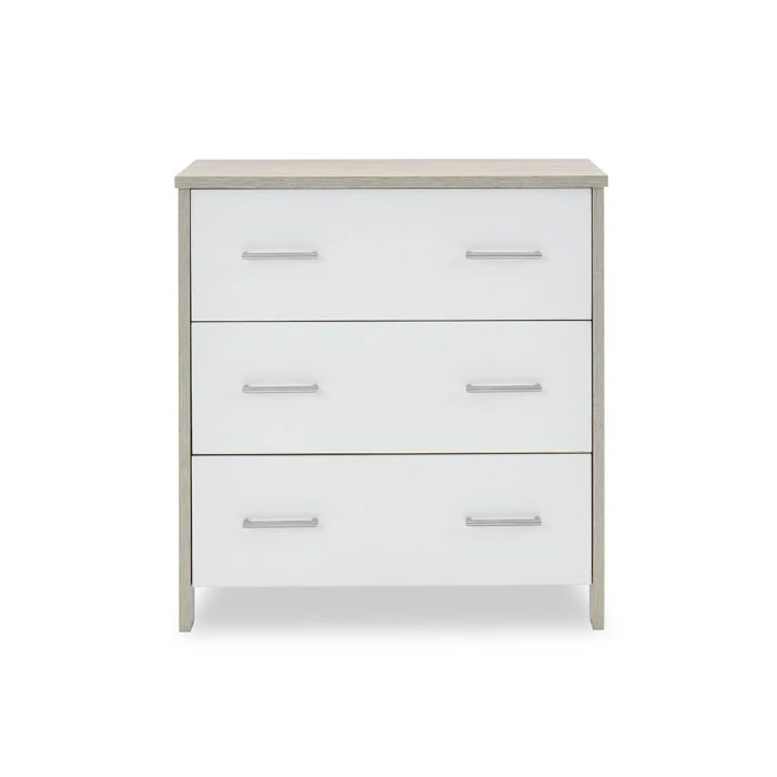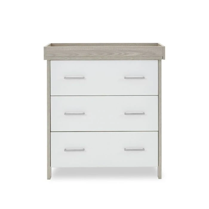 The Nika changing unit is a piece of furniture that can be used for years to come. Three large 32L capacity, full depth drawers offer plenty of space for changing essentials, toys and your little one’s precious possessions. All three drawers feature two brushed metal handles and glide on smooth runners allowing you to easily open them with either hand.