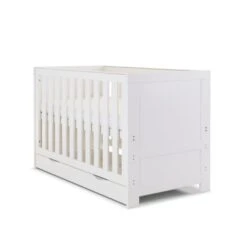 For the smaller nursery, Obaby have created the Nika Mini cot bed. More compact than the full-sized Nika cot bed without compromising on features, the Nika Mini has three mattress base positions, the highest allowing you to put down and pick up your newborn without straining your back through unnecessary bending. As your little one starts to develop and become more active, the mattress base can then be lowered by a further two positions keeping them safe and secure at all times while the teething rails protect their delicate first teeth.