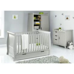The Obaby Stamford furniture range offers families the perfect combination of style, quality and practicality. The Stamford Classic 3 piece room set consists of the beautiful Stamford Classic cot bed with under drawer, closed changing unit and double wardrobe. All pieces feature the same elegant sleigh design that flows throughout the Stamford range.