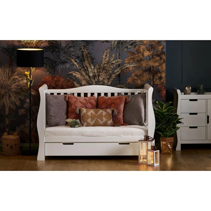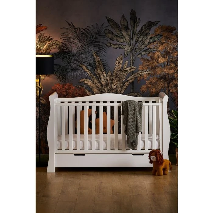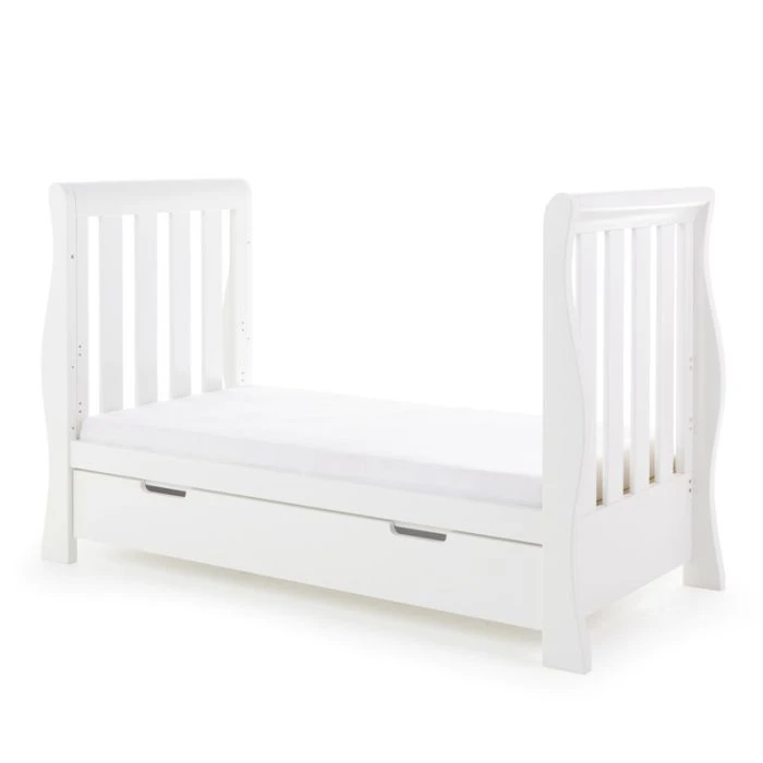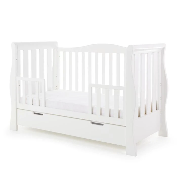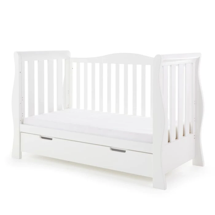Obaby’s Stamford furniture range offers families the perfect combination of style, quality and practicality. Standing proud at the top of the range is the beautiful Stamford Luxe sleigh cot bed, crafted from thick, solid pine and featuring deluxe hand carved ends that flow perfectly into the curved rear side rail creating a unique look which truly sets the Luxe apart from other sleigh cot beds.