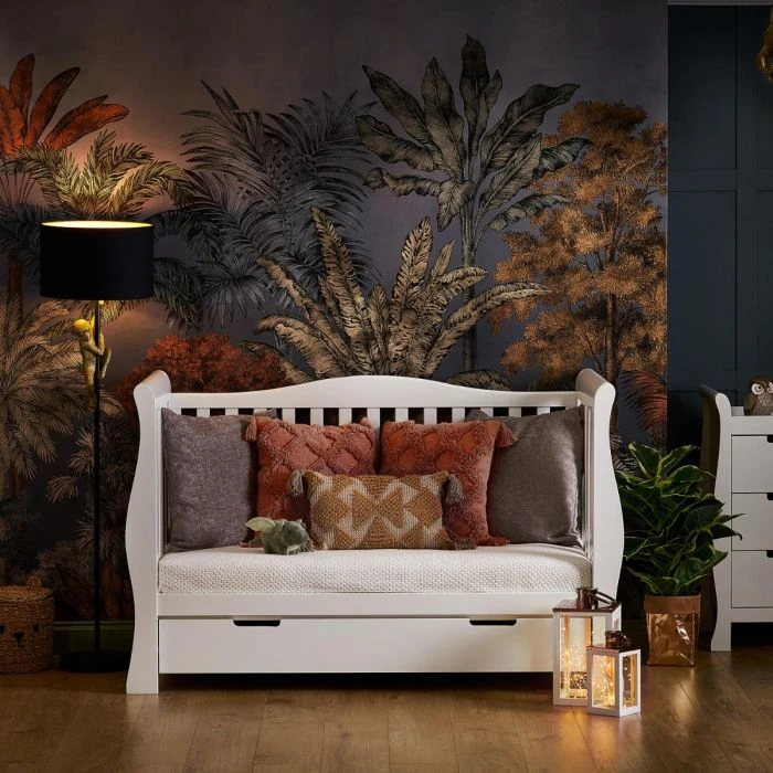 The integrated under drawer smoothly glides on runners, fitting neatly under the cot bed.