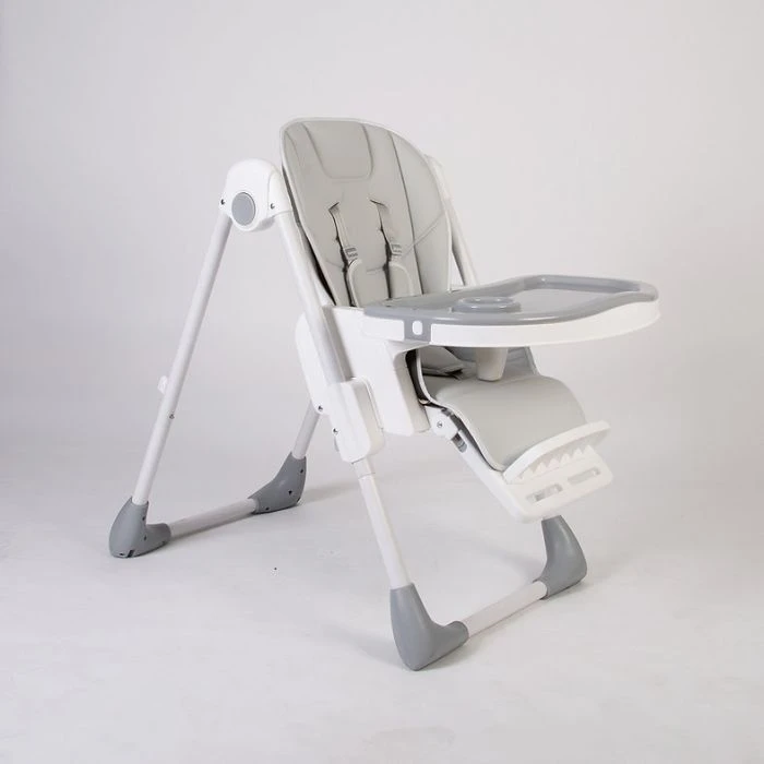 - Luxury High Lo highchair finished in a soft grey and white modern design