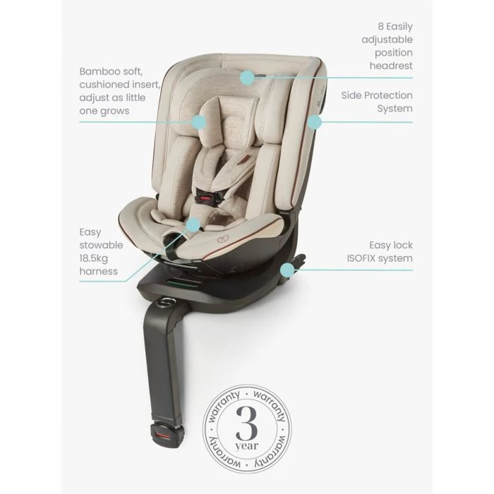 - R129 approved 360° rotating car seat, suitable from birth to approx. 12 years old