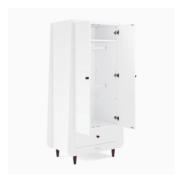 The SnuzKot Wardrobe features adjustable shelving and rails, a spacious interior, and a large drawer perfect for bedding or essentials.
