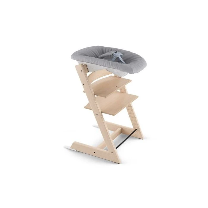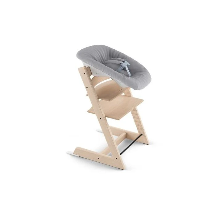 The Tripp Trapp® Newborn Set is designed to encourage bonding from the very beginning. Comfortable and ergonomic, it cradles your newborn, lifting them to table height. Now with 2 angle adjustable positions and excellent leg support, your little one is assured a cozy, nest-like environment they are sure to enjoy. This enables eye contact, promoting interaction during meals and gatherings around the table. It´s a great way to keep your baby close while building strong relationships with the whole family. Safe and simple to use, the Newborn Set can easily be attached and removed from the Tripp Trapp® chair. Red-green indicators reassure you that it is mounted correctly while a 5-point safety harness with protective shoulder pads keep baby extra secure. The toy hanger lets your little one keep their favorite toy close at hand to keep them entertained while helping to stimulate their evolving motor skills. Suitable from newborn up to 9kg.