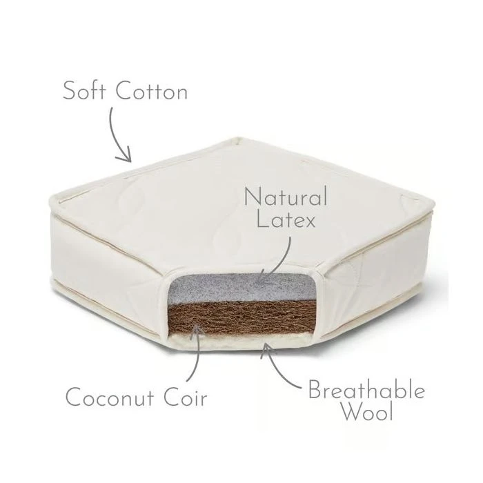 The multi-award-winning Little Green Sheep Twist Mattress has been beautifully handmade for your precious new-born baby, in the most natural way. Using only the highest quality natural materials, our Dual-Sided Twist Mattress core has been designed to provide little ones with the natural comfort they need for the best nights sleep. Featuring a firm supportive core for your baby as recommended by safe sleep experts, our Dual-sided Twist Mattresses offer the ultimate in natural comfort, with a durable yet supportive layer of latex for even support and weight distribution as they grow from a baby, to toddler and beyond.Â