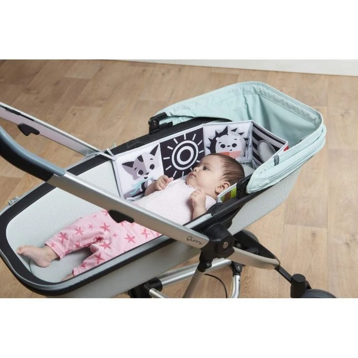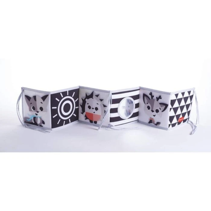 Cute dual-stage illustrations book that stimulates vision and encourages tummy-time.