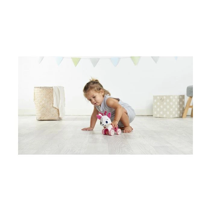 The toy’s flexible body, rotating head and rolling movement change its appearance and its playing mods, inspiring baby’s imagination and creativity.