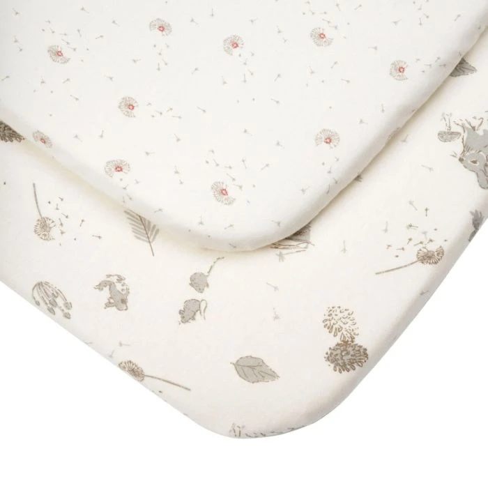 The Bedside Crib Starter Pack is a beautifully designed bedding set suitable to use with all CoZee bedside cribs. The pack includes 2 fitted sheets and lightweight coverlet, all made of soft certified organic cotton with beautiful nature-inspired prints. Two sheets make sure you always have a spare sheet at hand, when the other is in the wash. The coverlet provides safe ‘feet to foot’ position recommended for babies in their first 6 months. Both sheets and coverlet can be easily laundered in washing machines at 40 °C.