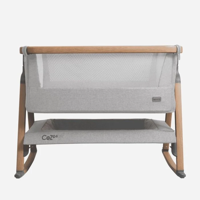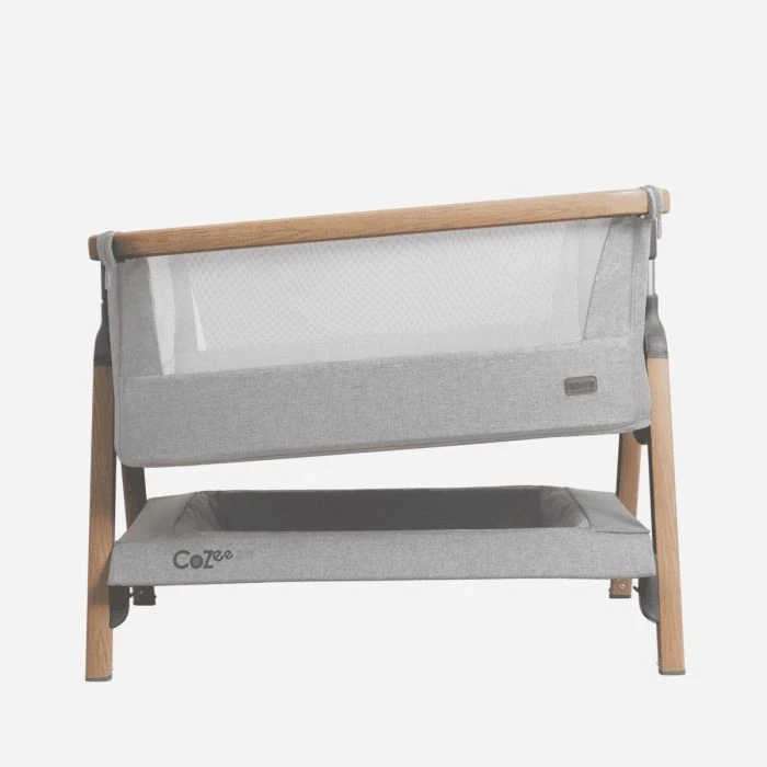 The CoZee Air bedside crib in Sterling Silver & Oak offers all the benefits of the classic CoZee bedside crib but has mesh side panels to provide added ventilation. This superior model comes complete with rocking bars and castors and with the addition of a deluxe airflow mattress and ventilation panels.