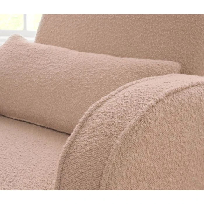 The trendy boucle fabric adds a dimensional appeal, making it the perfect statement piece for both comfort and aesthetic charm.
