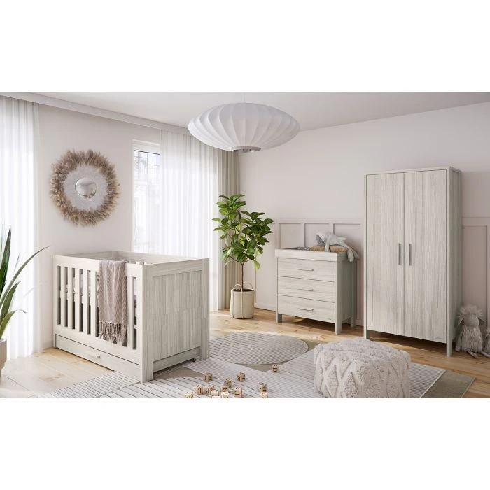 The beautiful Forenzo collection is a reaction to parents’ needs and their little ones too. The furniture set is characterized by an attractive reproduction of the structures and colors of wood, thanks to which it brings peace and a cozy atmosphere to the room. We also focused on simple forms that allow you to arrange an atmospheric space for both a boy and a girl. Thanks to the changing table on the dresser and the three-stage adjustment of the crib, the furniture allows us to take care of the healthy backbones of proud parents.