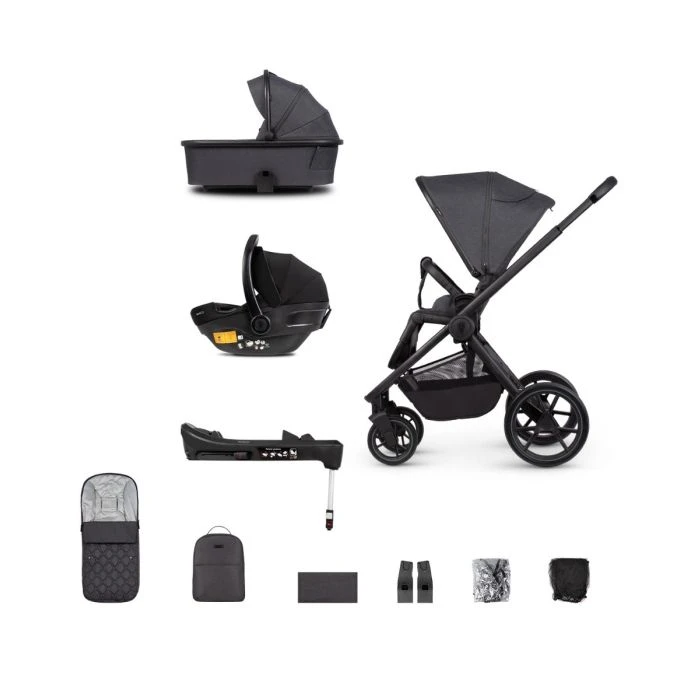 - Includes: Carry Cot, Seat Unit, Car Seat, Frame, Backpack, Footmuff, Changing mat, Raincover (universal), Mosquito (universal), Car Seat Adapters, Isofix Base